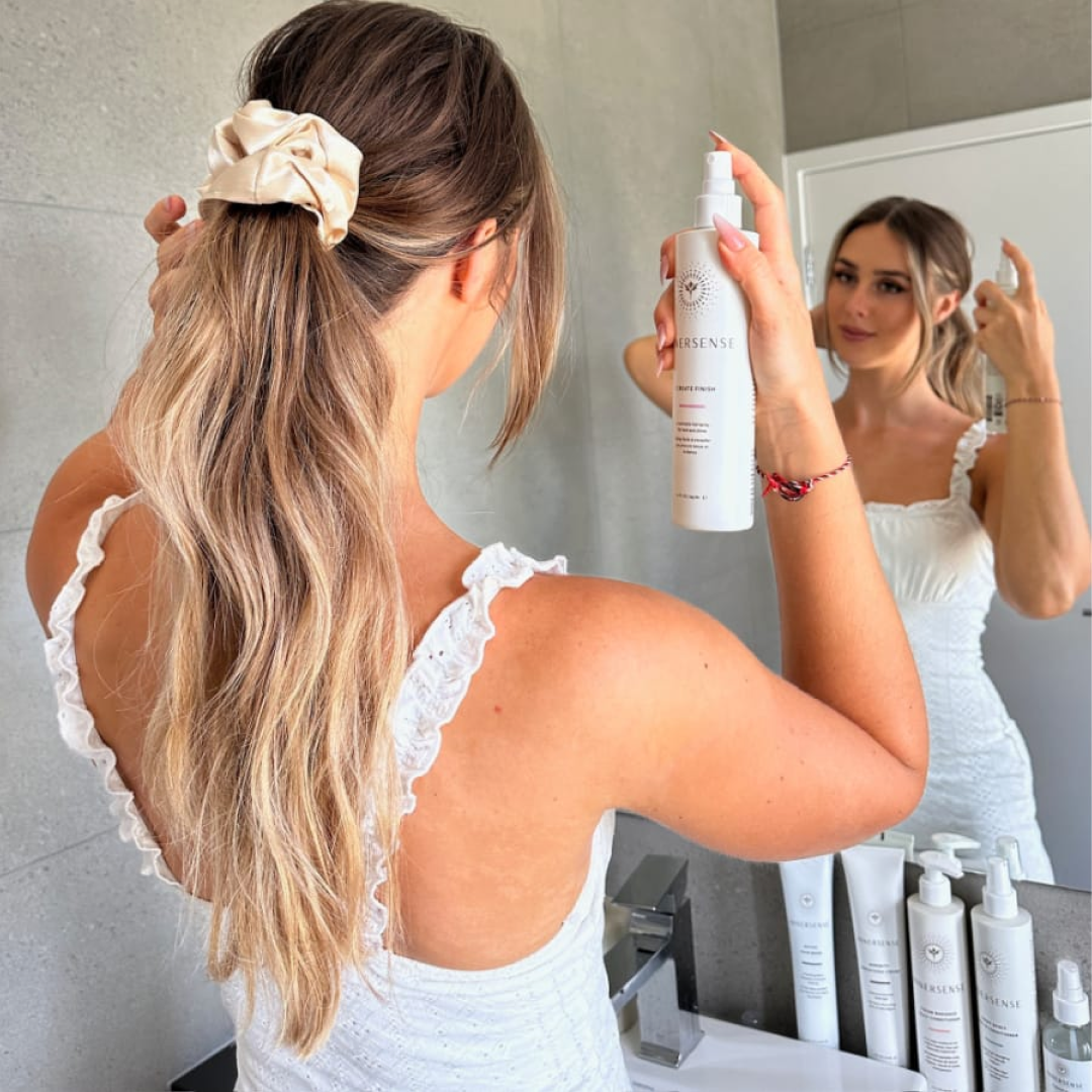 Set hair in place with this finishing spray crafted with clean ingredients that won't dehydrate or compromise hair. Naturally effective style-setters like nourishing Certified Organic Honey help maintain moisture and provide touchable hold. Organic Rice Protein helps fortify strands from root to tip, and Rooibos Tea douses hair in antioxidants for a healthy shine. It leaves behind a light Lavender scent to offer peace of mind.